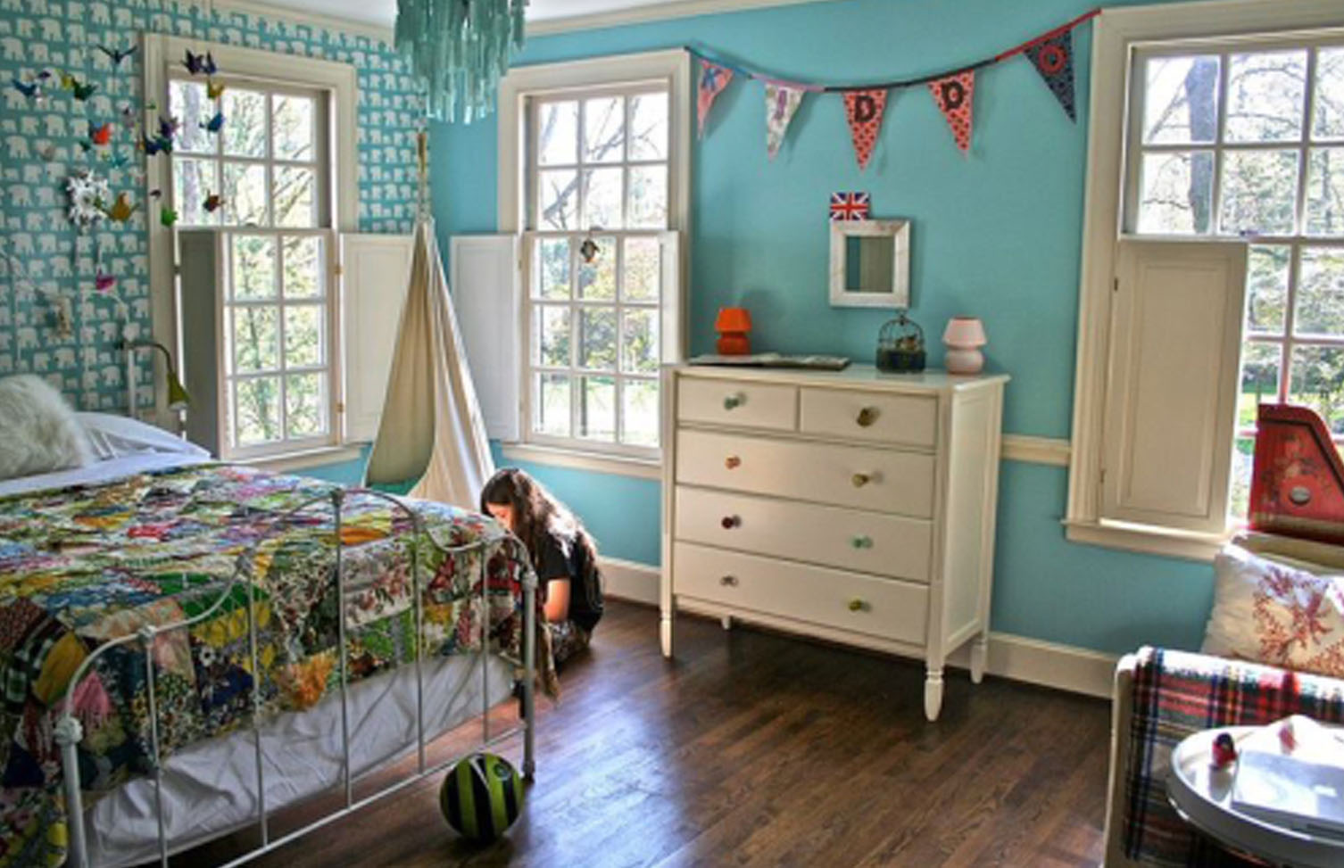 Here are some photos of my favourite mismatched furniture pieces from The Pocket Stylist and Scrimpalicious. I love how they’ve painted all the different chairs that lovely duck egg blue colour in the second photo. And the stick chandelier/suspended Christmas tree looks fantastic! I can imagine using this decorating tip for a kid’s party, housewarming or any other party. You could put coloured flags, nametags or any type of ornament on here. You could even use small church candles and melt them in so they stand up by themselves. Of fairy lights…